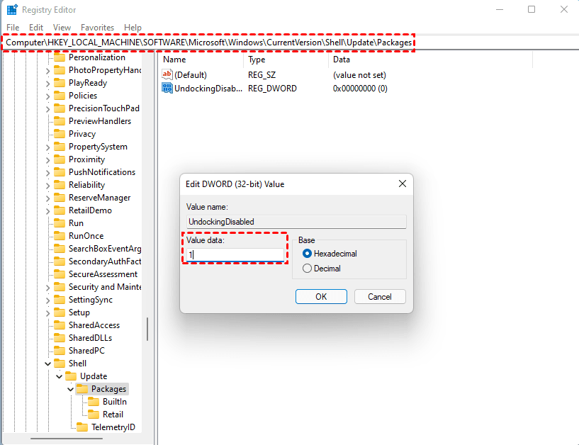- Computer\HKEY_LOCAL_MACHINE\SOFTWARE\Microsoft\Windows\CurrentVersion\Shell\Update\Packages