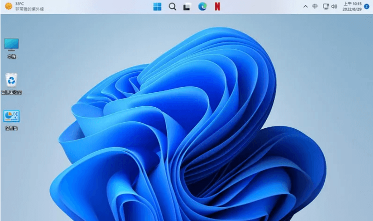 - 除了在螢幕中間對齊的按鈕之外,您還會注意到有一個新的“開始”徽標按鈕,以及用於“搜索”、“任務視圖”、“小部件”和“聊天”的新按鈕。 Cortana 和 My People 不再是體驗的一部分。