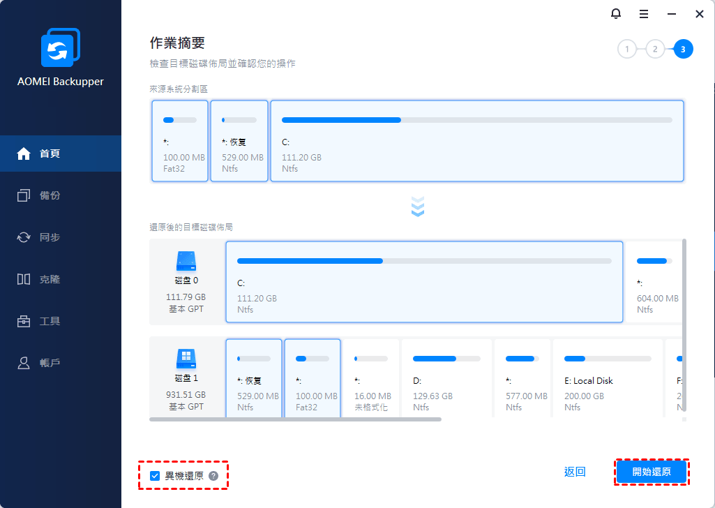以上就是關於如何將硬碟克隆到虛擬機的全部內容。您可以使用Backupper的備份和還原功能輕鬆實現此操作。在恢復過程中,最重要的部分是如果您的電腦具有不同的硬體,務必選中“異機還原”功能。