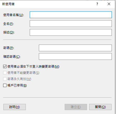 步驟4. 在“新使用者”視窗中,輸入使用者名稱、密碼和確認密碼,然後點選“建立”按鈕。