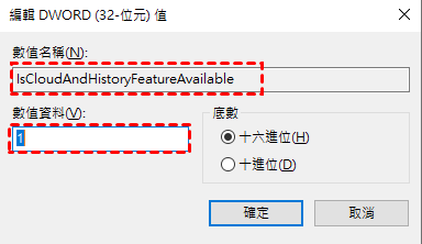 步驟3. 在右側視窗中找到 IsCloudAndHistoryFeatureAvailable,然後點選並輕按兩下該按鈕。