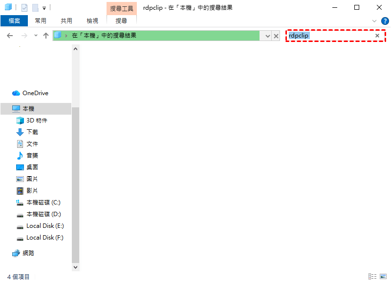 步驟2. 在System32中找到rdpclip.exe。您也可以點選右上角的搜尋欄,輸入rdpclip,同樣可以找到rdpclip.exe。