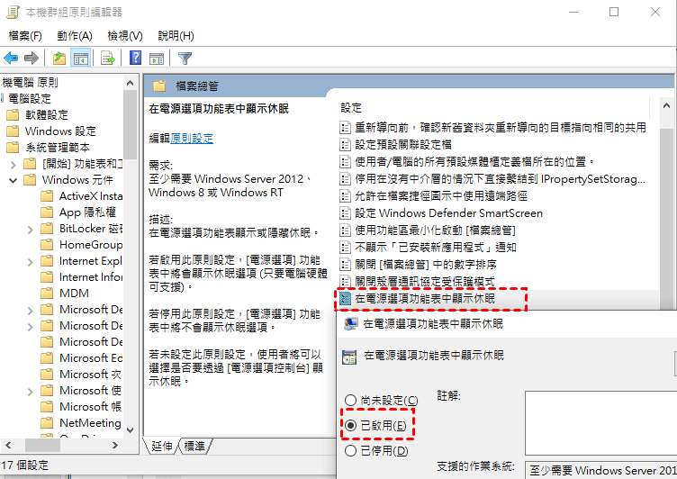 方法 4.使用本機群組原則編輯器啟用 Windows 11 休眠模式