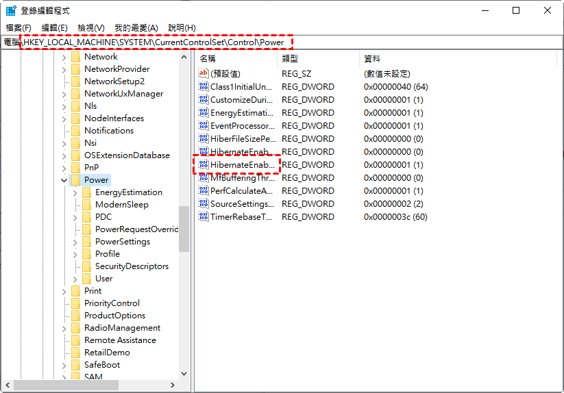 如果您不想使用前面提到的兩種方法,您還有另一種選擇,即使用登錄編輯程式啟用休眠模式。