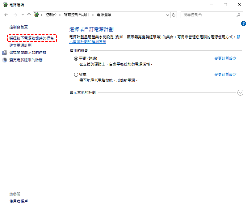 步驟3. 點選選擇按下電源按鈕時的行為。