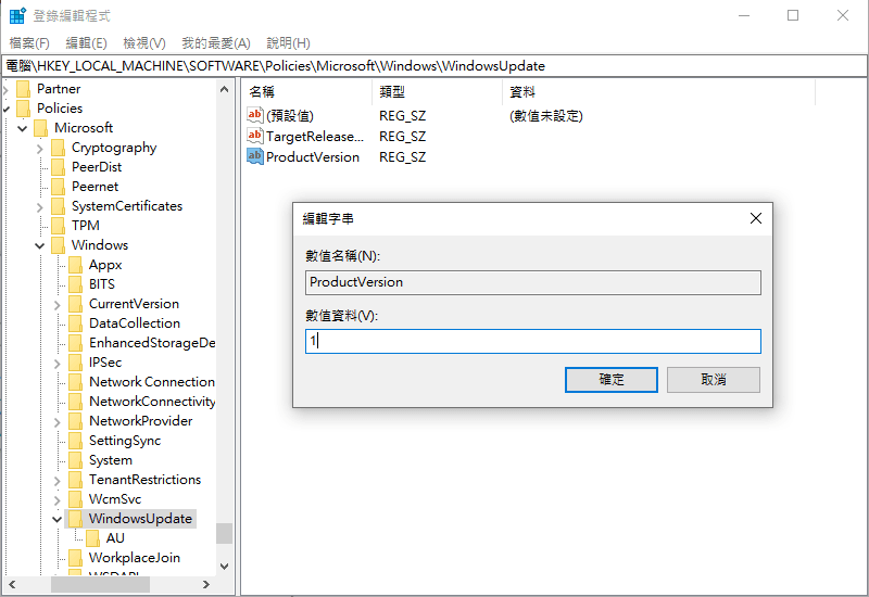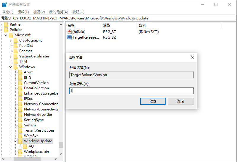 除了“TargetReleaseVersion”策略或登錄檔設定外,您還可以嘗試在登錄檔編輯程式中使用“NoAutoUpdate”。