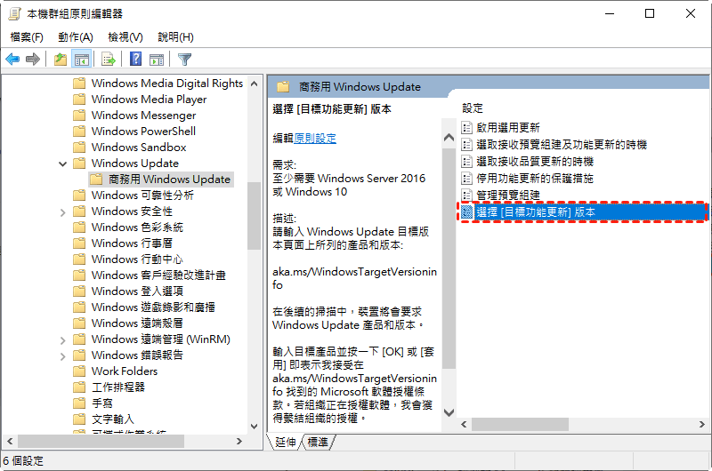 電腦設定 > 系統管理範本 > Windows 元件 > Windows Update > 商務用Windows Update