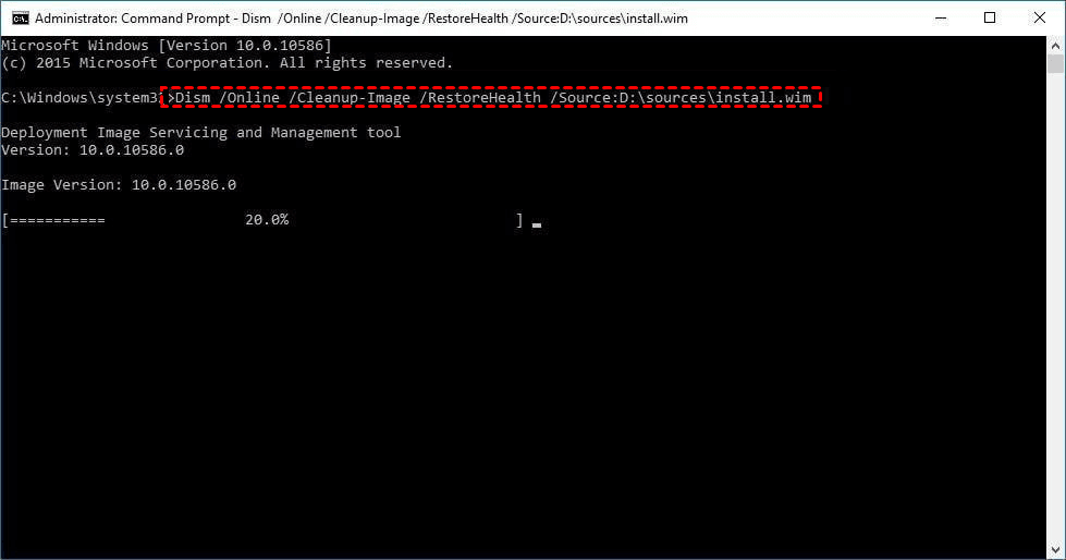 DISM /Online /Cleanup-Image /RestoreHealth /Source:repairSource\install.wim