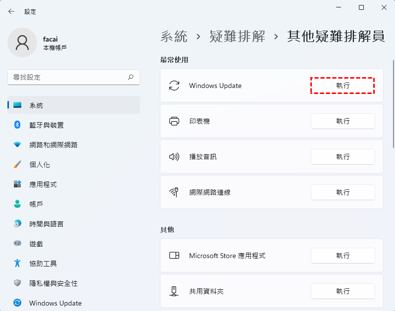 步驟3. 找到您當前問題的相關疑難解答,然後點選執行。然後,疑難解答程式將檢測您選擇的元件/功能的問題並修復它發現的任何問題。