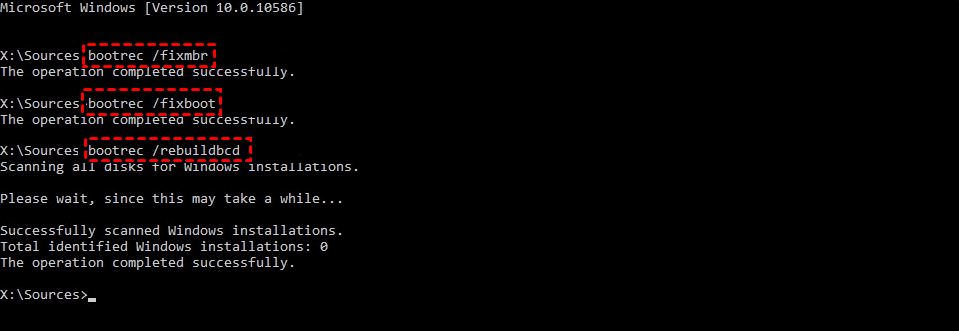 - BOOTREC /RebuildBcd