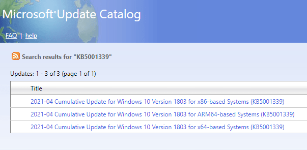 步驟2. 在Microsoft Update Catalog中搜尋版本號,它將為您提供不同架構(x86/ARM64/x64)的下載連結。