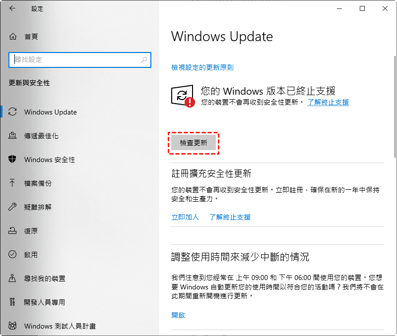 通常,您可以在設定 > 更新與安全性 > Windows Update 中「檢查更新」。