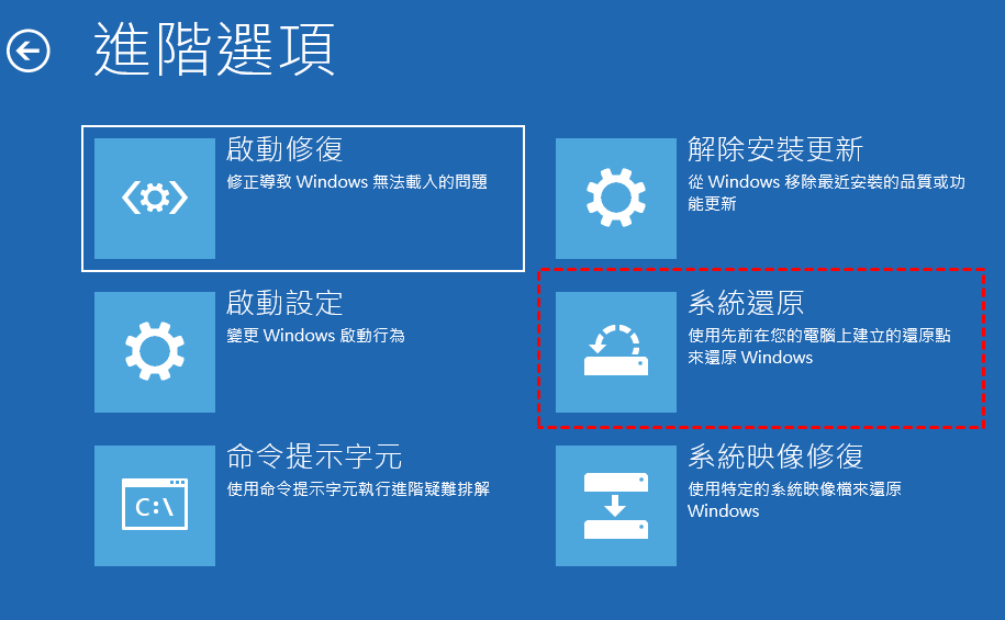 步驟2. 在安全模式中重複進行系統還原的步驟。