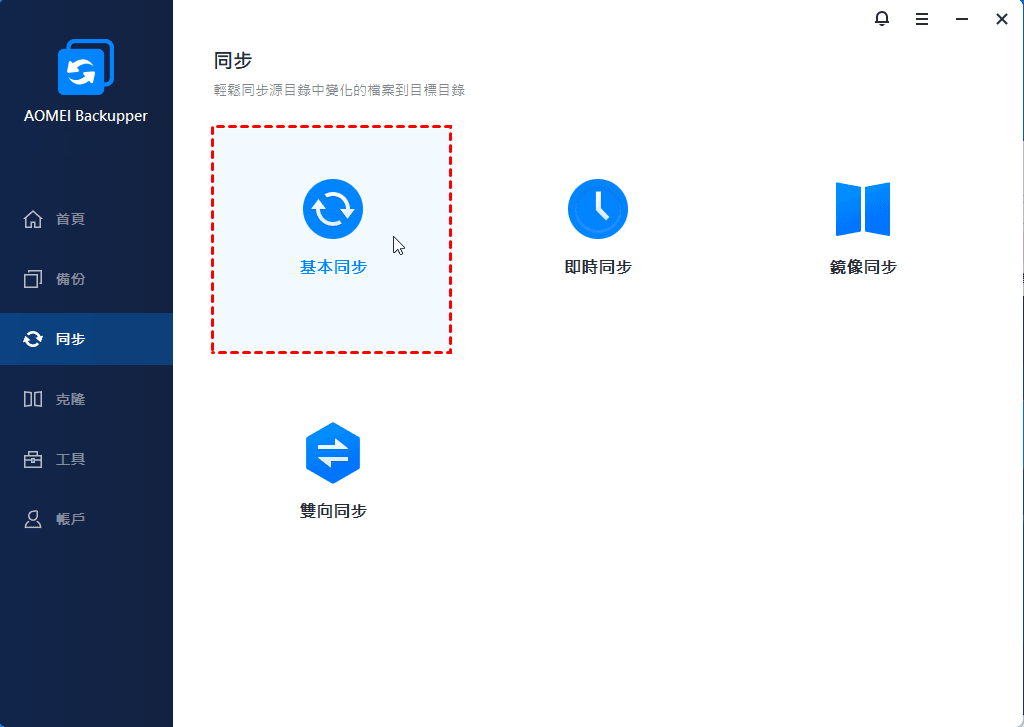 步驟1. 在同一個區域網路中的任何一台電腦上啟動軟體,進入同步分頁並選擇基本同步。