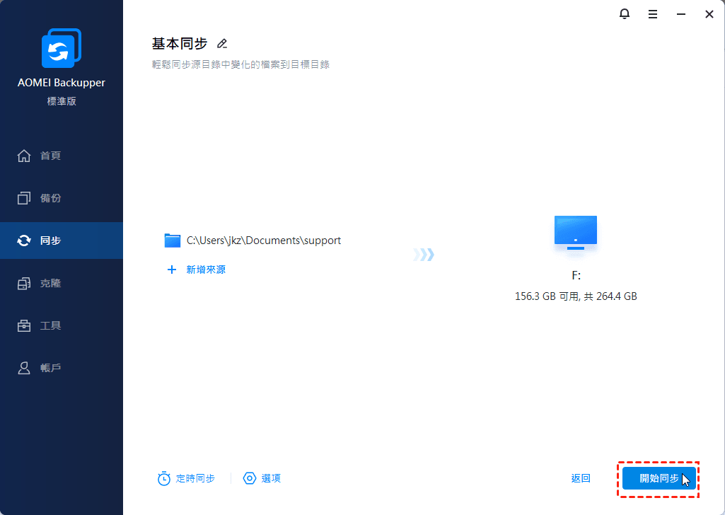 AOMEI Backupper Standard是支援Windows 11/10/8.1/8/7/XP/Vista的免費軟體。直觀的界面和簡單的操作使您可以在3個步驟內完成同步任務。