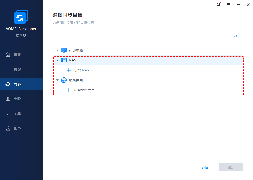除了在網路上同步外,您還可以將資料夾同步到 OneDrive、Google Drive、Dropbox、外接硬碟、USB 隨身碟、NAS 等。
