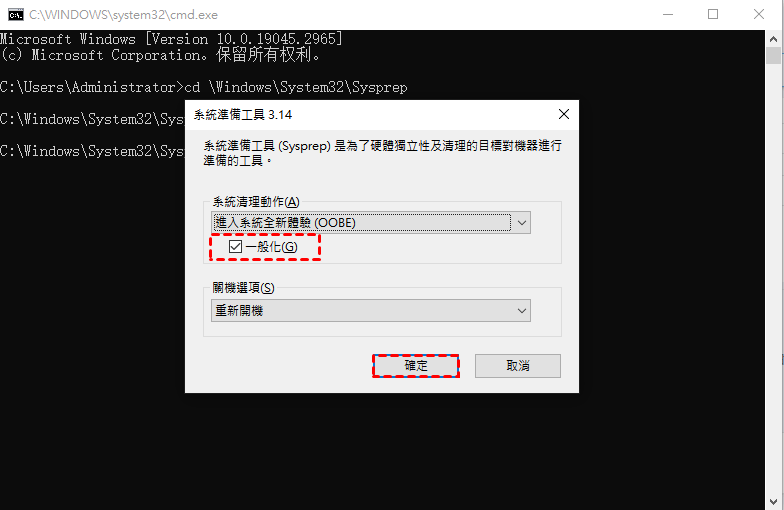 *如果您在虛擬機中執行Windows 10/11,可以使用以下命令將作業系統進行一般化:sysprep /generalize /mode:vm