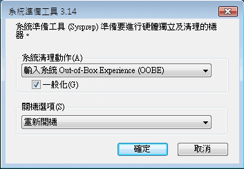 請注意,再執行sysprep後立即引導到WinPE,否則將生成新的SID訊息。