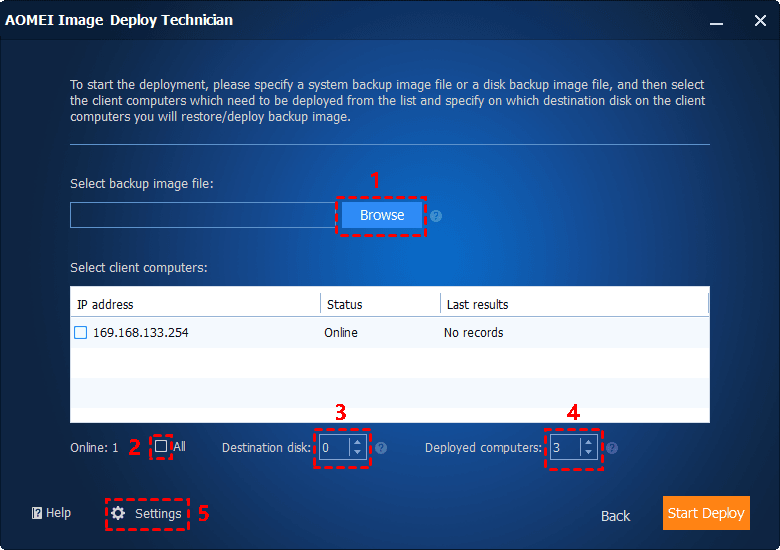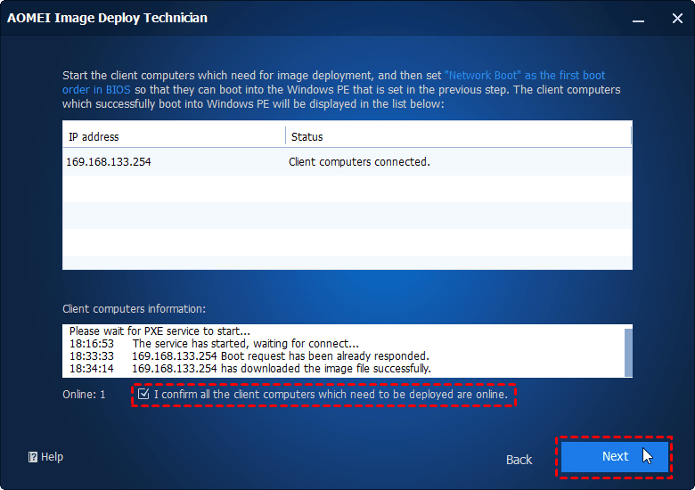 請注意,您需要升級到 AOMEI Backupper Technician Plus 版才能進行批次鏡像部署。