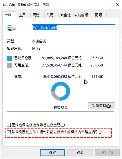 方法4. 禁止硬碟索引