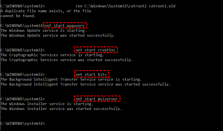 通過執行以下命令重新啟動 BITS、Windows Update和加密服務,確保在每條命令後按 Enter: