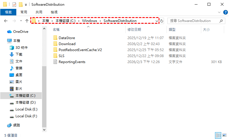 步驟1. 打開檔案總管,然後導航到 C:\Windows\SoftwareDistribution\。