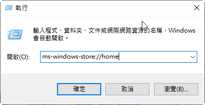 步驟1. 同時按下 Win+R 打開執行視窗。然後,鍵入 ms-windows-store://home 並按 Enter 打開 Microsoft Store。如果使用者帳戶控制提示您,請點選是以授與管理權限。