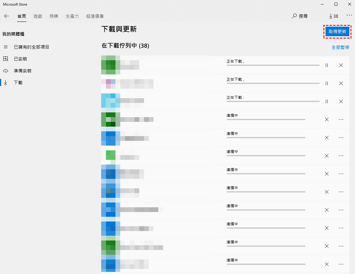 步驟3. 點選「下載和更新」選項卡中的「取得更新」按鈕,然後耐心等待,直到安裝每個待處理的更新。