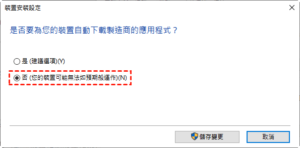 - 選擇否 (您的裝置可能無法如按預期般運作)並點選儲存變更。
