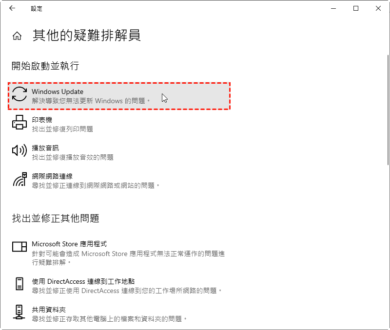 2. 在“ 其他的疑難排解員” 視窗中,找到“ Windows Update”,點選它,然後點選 “執行疑難排解”。