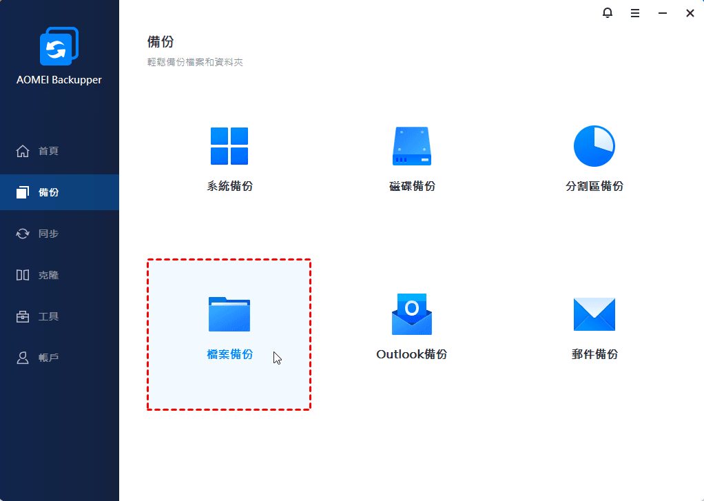 要在執行 Windows 11 更新之前備份重要檔案,請選擇備份>檔案備份。如果您擔心系統故障導致資料遺失,建議將檔案備份到外部硬碟。