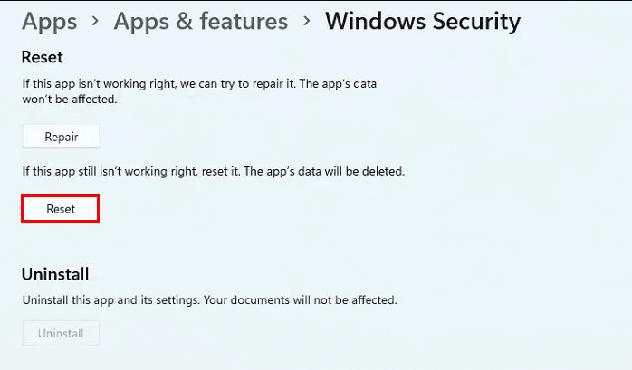 當您的 Windows Security for Windows 11 無法運作或無法開啟時,您可以選擇重設此軟體。重設將清除此應用程式的所有設定並重新啟動,就像您在Windows 11 defender重新安裝一樣。