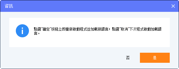 完成上述步驟後,將會收到一個“資訊”視窗,讓您選擇何時載入新語言。