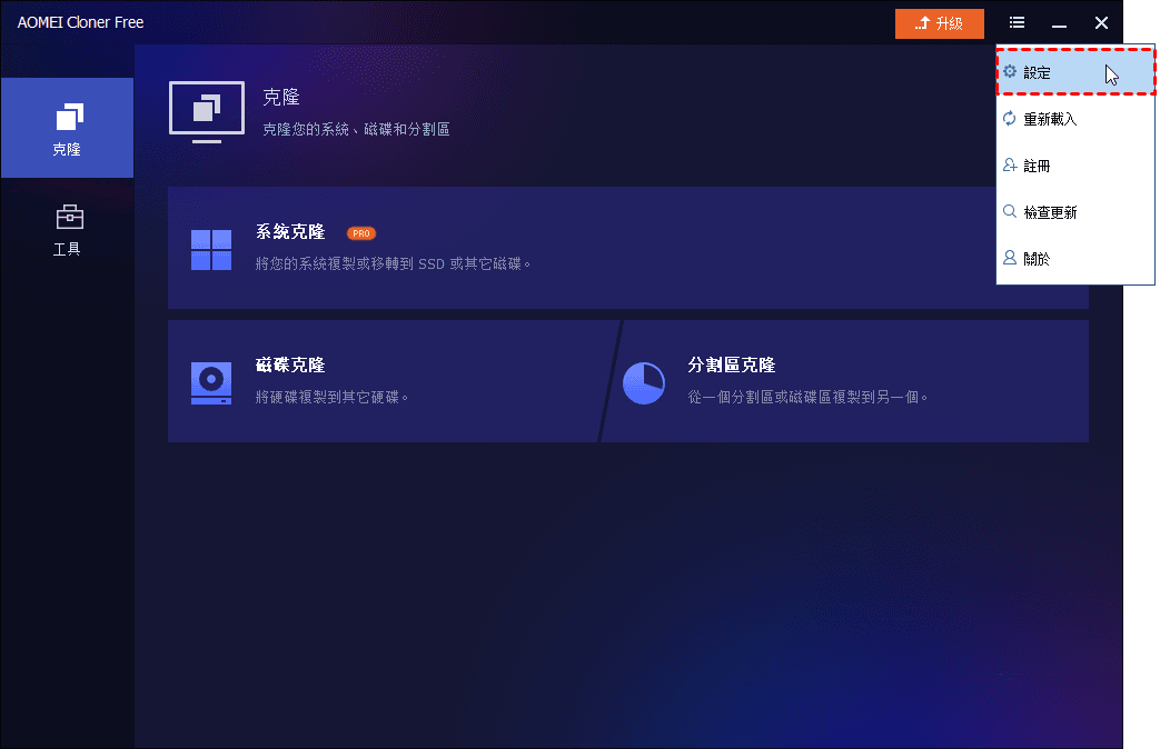 學習如何將 AOMEI Cloner 上的語言從繁體中文變更為英語、德語、法語、日語等。
