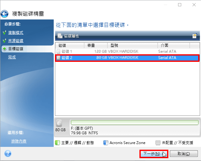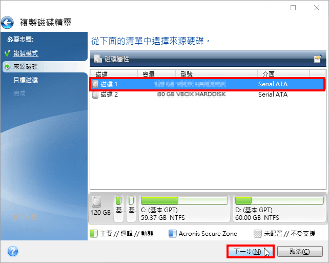 步驟 3. 選擇要克隆的來源硬碟,然後點選下一步。