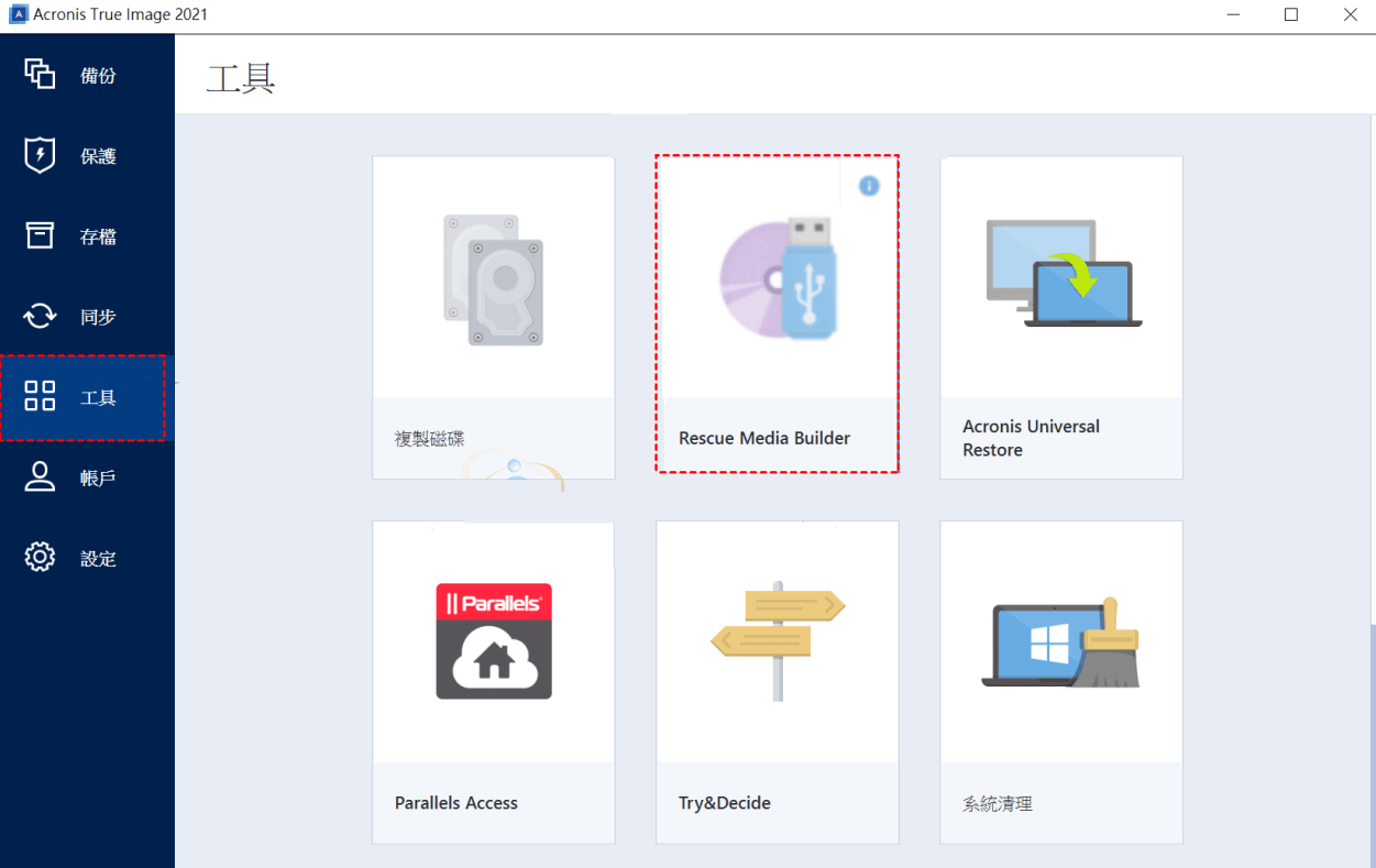 步驟 1. 在“工具”部分,點選“RESCUE MEDIA BUILDER”。