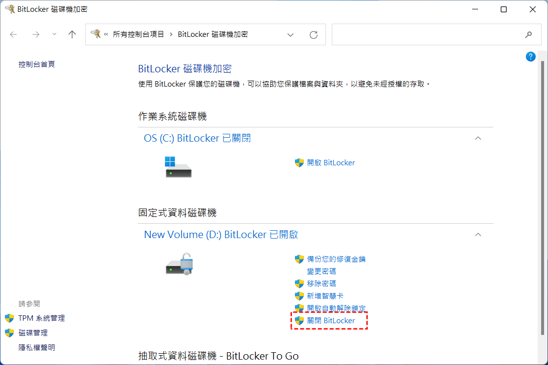 關閉 bitlocker