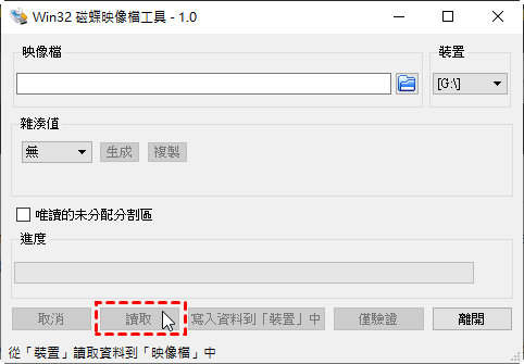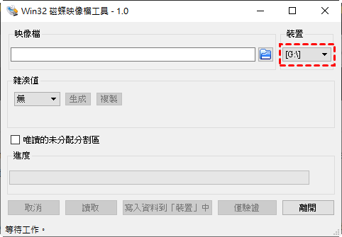 以 Win32 磁碟映像檔工具為例,您可以透過以下步驟來複製 SD 卡。