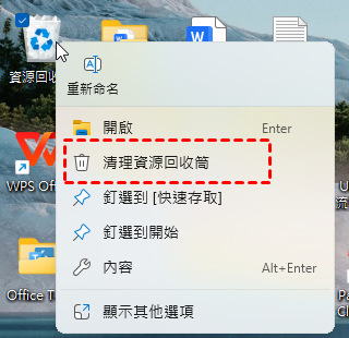 步骤3.清理回收站(右键回收站→清空)。