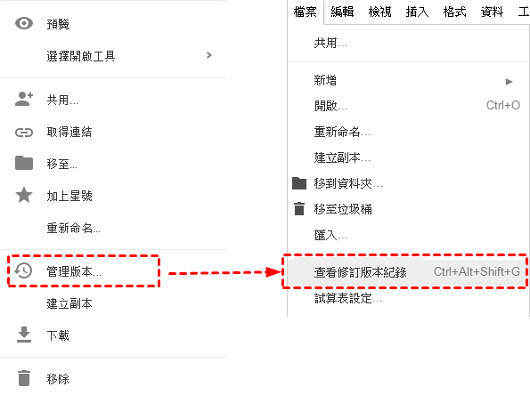 版本歷史記錄是 Google Drive 的功能,可將覆蓋的資料還原到先前的版本。它將把舊版本的 Google Drive 檔案儲存約一個月。
