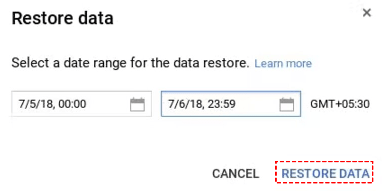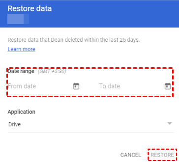 4. 選擇日期範圍並點選復原資料。已刪除的檔案現在將恢復到選定的團隊雲端硬碟。