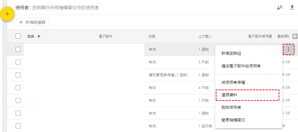 1. 登入 Google 管理控制台並還原已刪除的帳戶。
