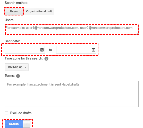 3. 選擇使用者搜尋方法並輸入使用者的電子郵件。