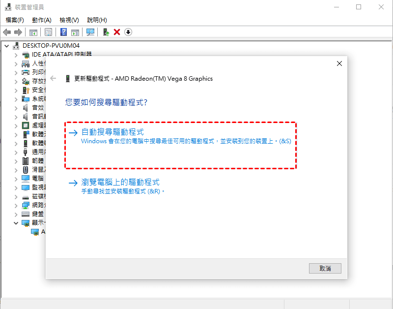 步驟3. 然後,您需要點擊「自動搜尋驅動程式」選項,耐心等待搜尋完成。如果有任何可用的更新,請立即更新顯示卡驅動程式。