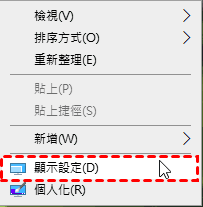 步驟1. 右鍵點擊Windows電腦桌面的空白區域,並選擇「顯示設定」。
