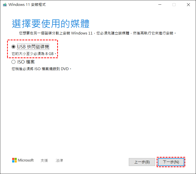 方法2、使用微軟官方工具製作Win11開機碟