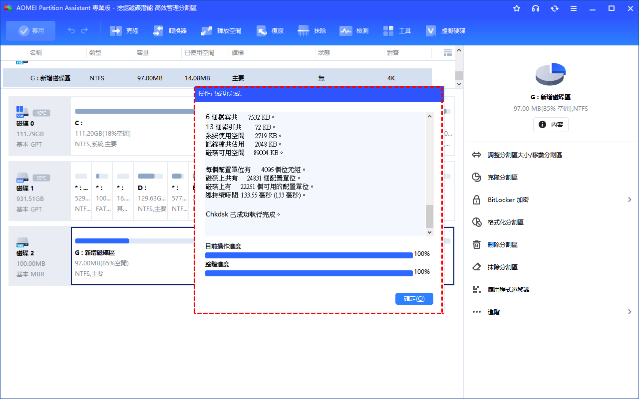 (3)然後,等待程式檢查選定的分割區。檢查完成後,請點選「確定」按鈕。