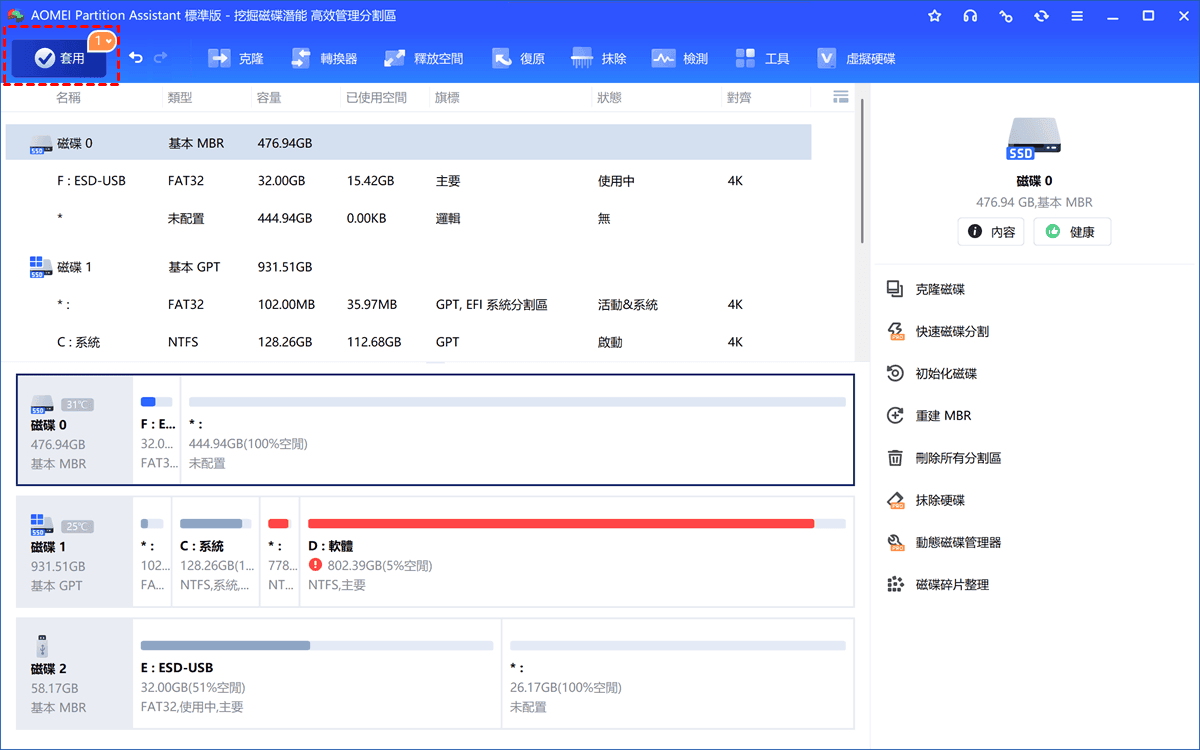步驟5. 返回主界面,預覽結果,點擊「套用」執行該任務。