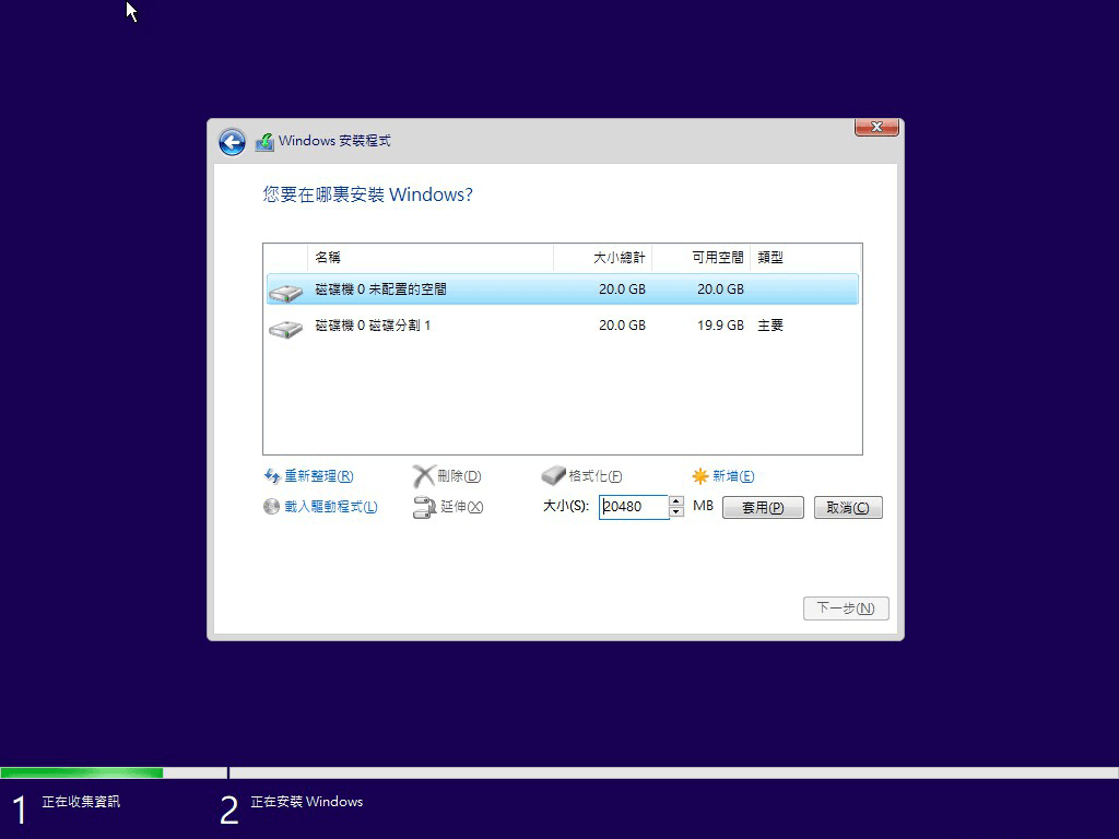 步驟 2:開始安裝 Windows 如果順利,會看到螢幕變藍底,出現「Windows 10 安裝程式」。