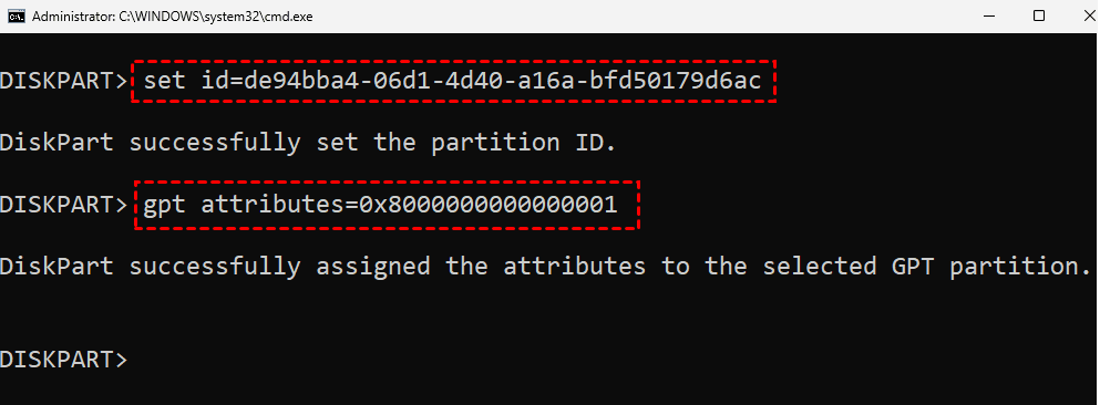 - gpt attributes=0x8000000000000001